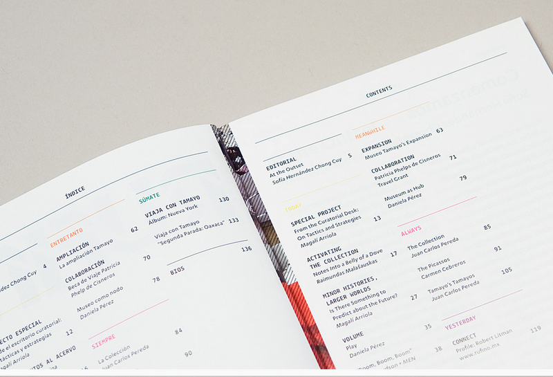 Rufino is a biannual journal published by Museo Tamayo in Mexico City. Taking its title from the first name of the the museum’s founder, Mexican artist Rufino Tamayo, the journal presents a range of essays and artworks connected to the museum’s new contemporary art program. Inspired by popular small-format publications such as Selecciones, Reader’s Digest, and TV Guide, the magazine emphasizes portability, readability, and accessibility.